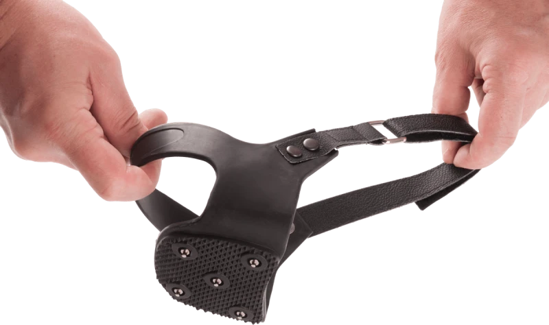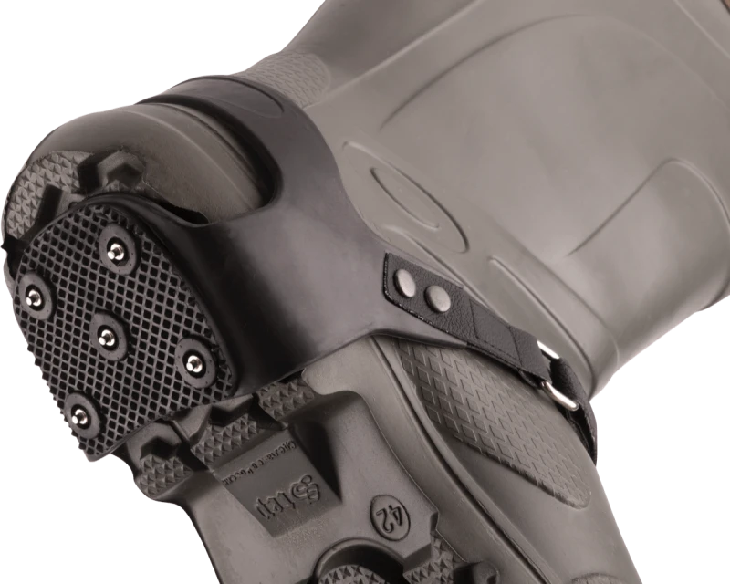 Приспособление для ходьбы в гололёд "Антигололед" надевается на пятку и вокруг ноги фиксируется липучкой.