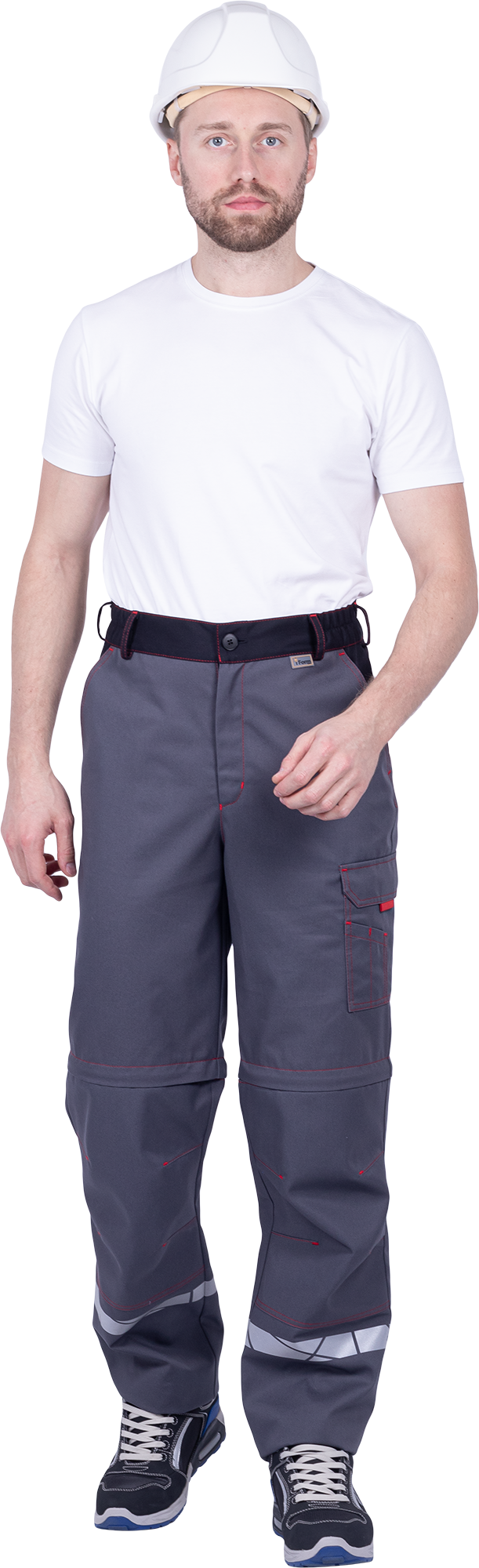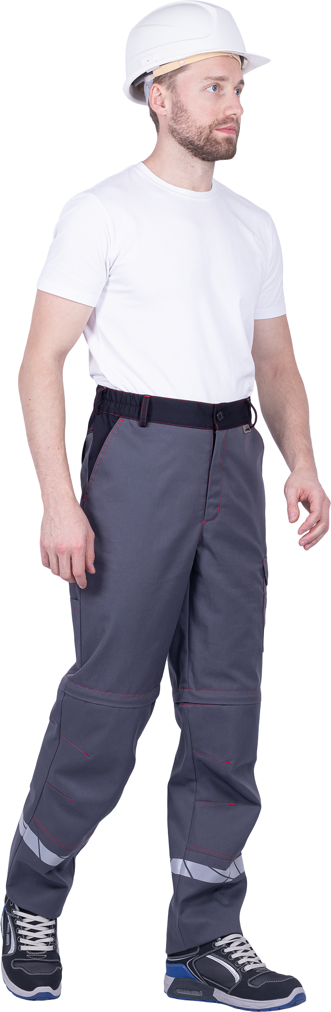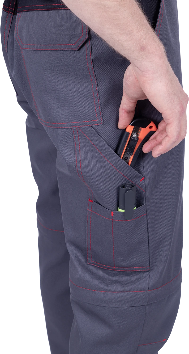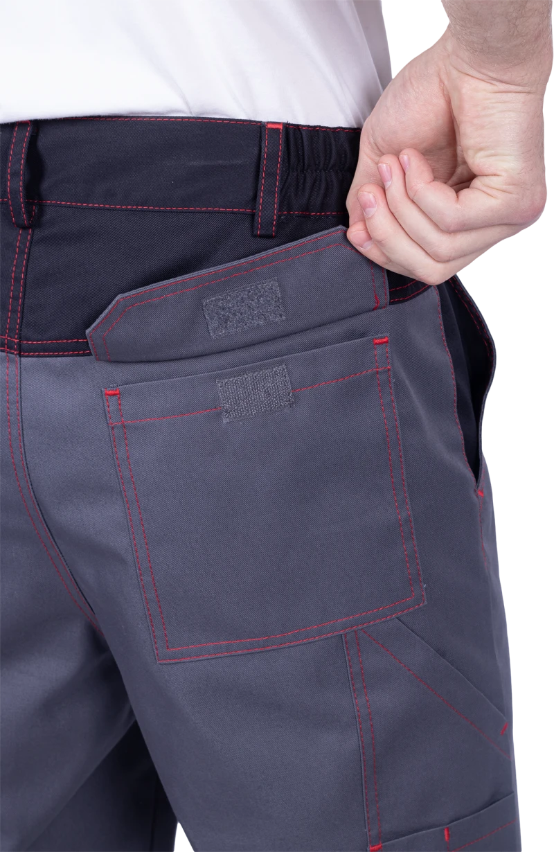 Брюки мужские ХАЙ-ТЕК SAFETY от механических воздействий и ОПЗ, серый/красный/черный