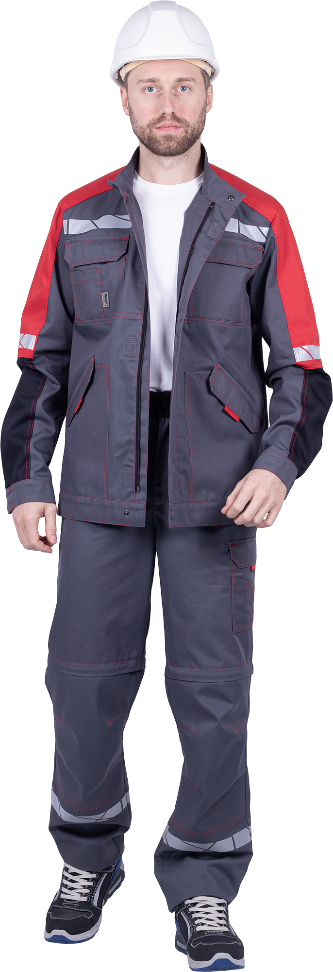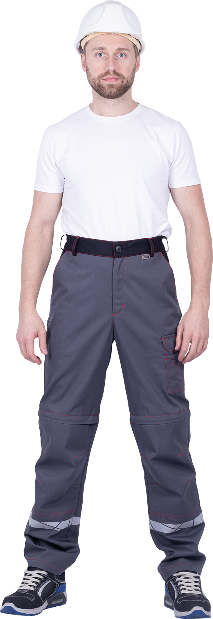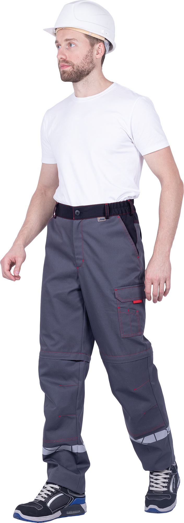 Брюки мужские ХАЙ-ТЕК SAFETY от механических воздействий и ОПЗ, серый/красный/черный