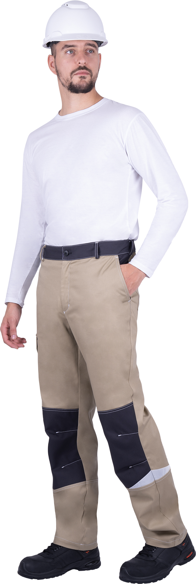 Брюки мужские ТУРБО SAFETY от механических воздействий и ОПЗ, бежевый/темно-серый