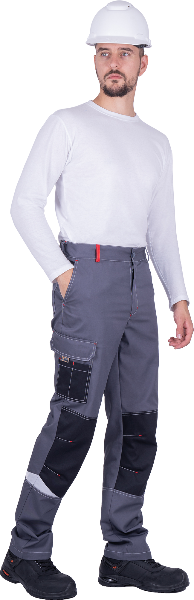 Брюки мужские ТУРБО SAFETY от механических воздействий и ОПЗ, серый/черный/красный