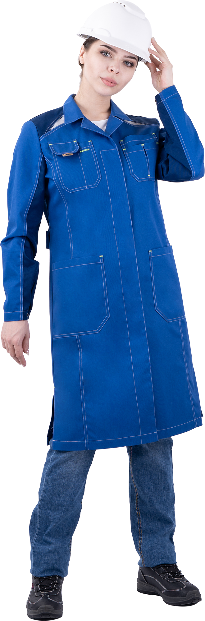 Покупайте Халат женский ТУРБО SAFETY от механических воздействий и ОПЗ, василек/синий по цене договорной руб. оптом или в розницу в магазине спецодежды СнабТим. Большой выбор защитной одежды, СИЗ и других хозтоваров в Нурлате. Заказывайте онлайн или по телефону +7 (991) 190-59-22
