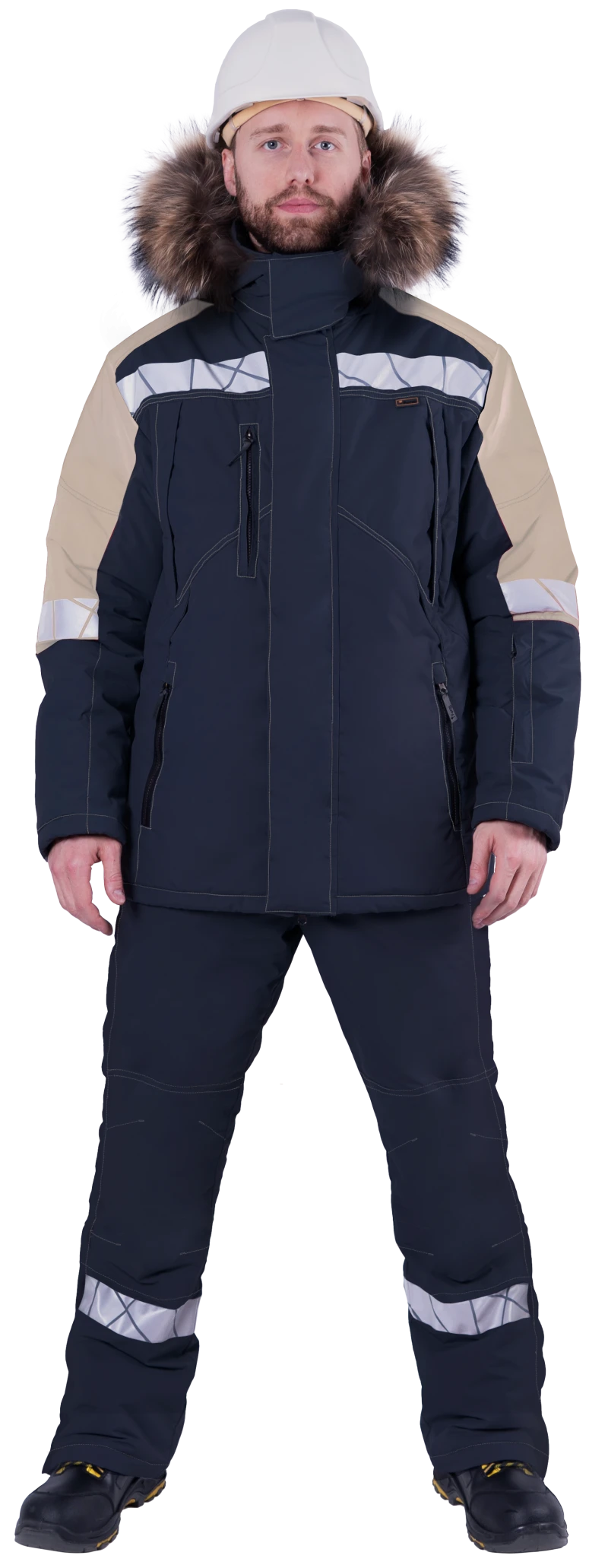 Куртка мужская ХАЙ-ТЕК SAFETY от пониженных температур воздуха и ветра, механических воздействий и ОПЗ, синий/бежевый