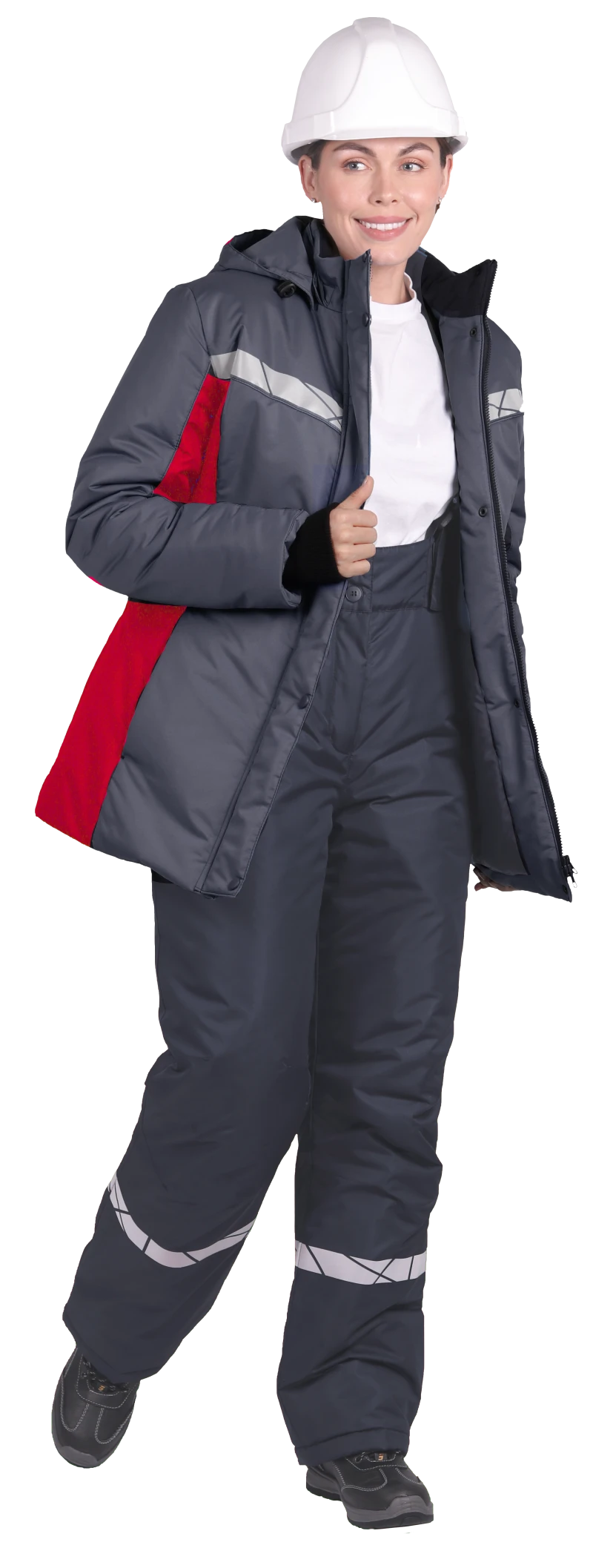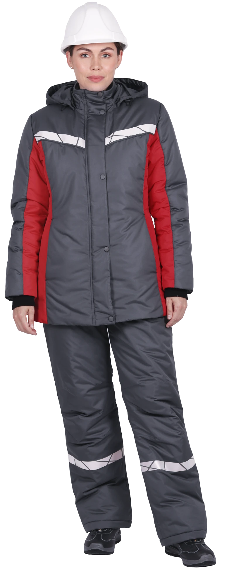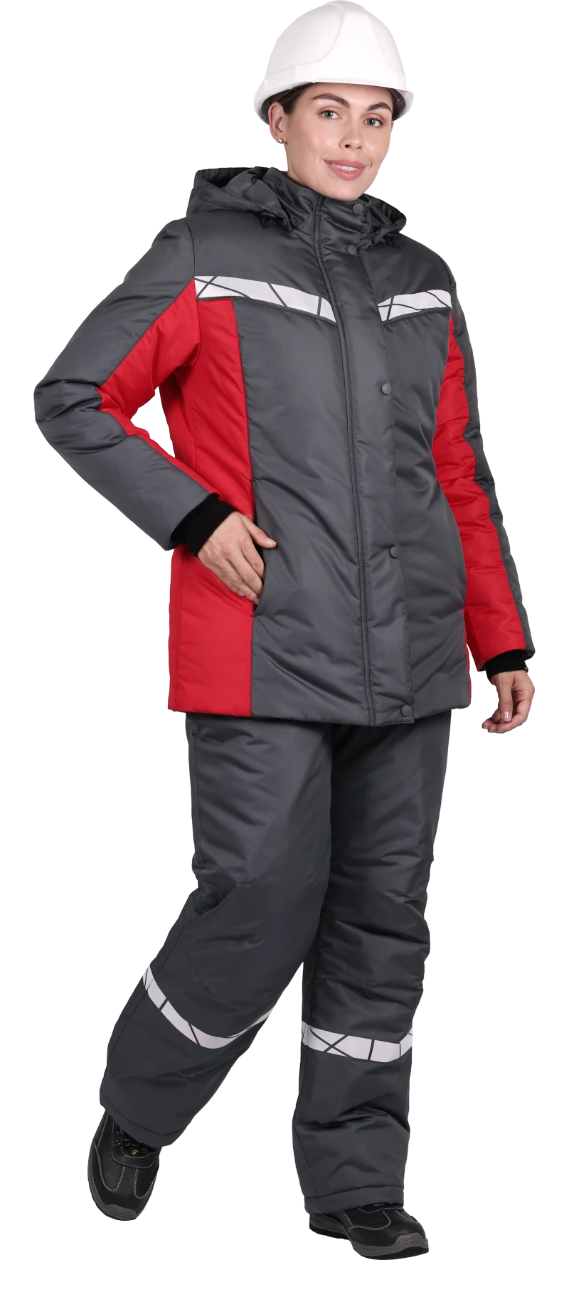 Куртка ВИРАЖ НЕО зимняя, т/серая-красная, женская