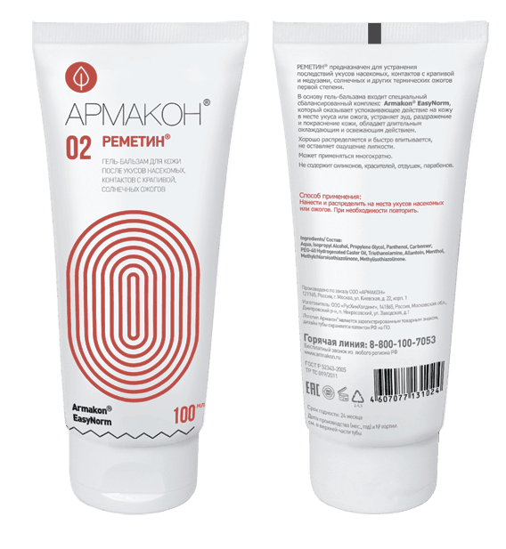 Комплекс Armakon® PureSoft оказывает успокаивающее действие на кожу в месте укуса или ожога, устраняет зуд, раздражение и покраснение кожи.