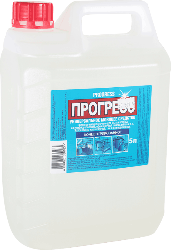 Прогресс универсальное моющее средство для мытья всех видов посуды, кухонных принадлежностей и влажной уборки бытовых и промышленных помещений.