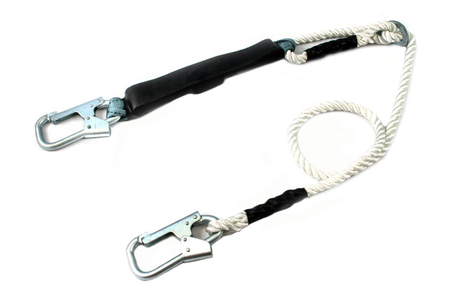 • Строп оснащён с двух сторон двумя карабинами для удобной работы и крепления к элементу крепления привязи и к анкерной точке.